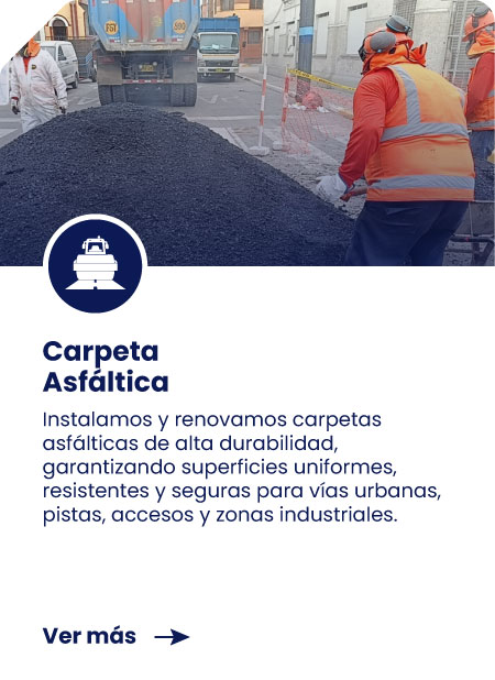 Somos especialistas en la construcción e implementación de asfalto de la mejor calidad, garantizando altos estándares internacionales. Nos enfocamos en ofrecer soluciones duraderas para proyectos de infraestructura vial, optimizando cada proceso para mayor eficiencia y seguridad.